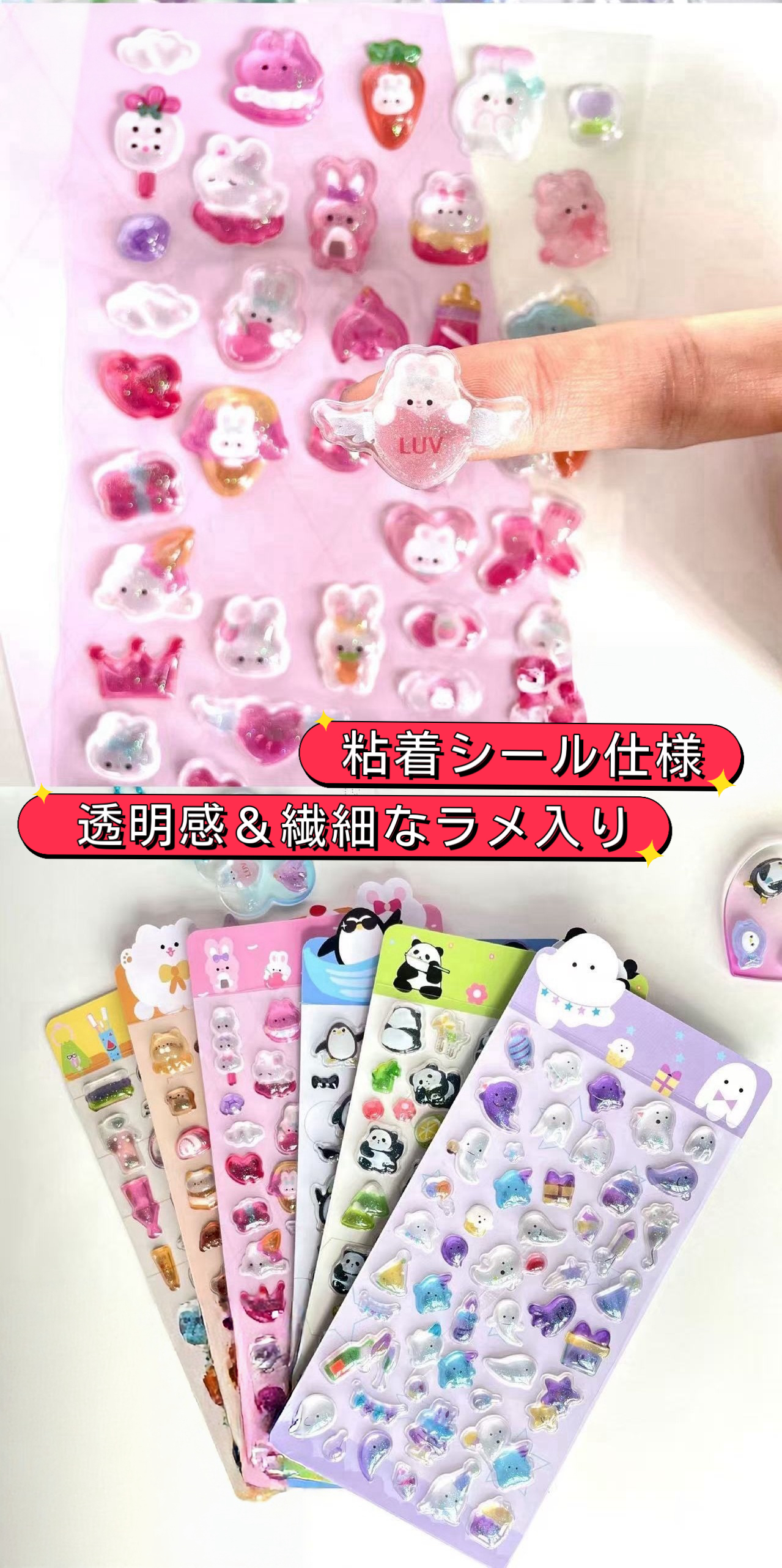 透明感のある素材に繊細なラメを加えた、立体感が魅力のデコレーションステッカーです。