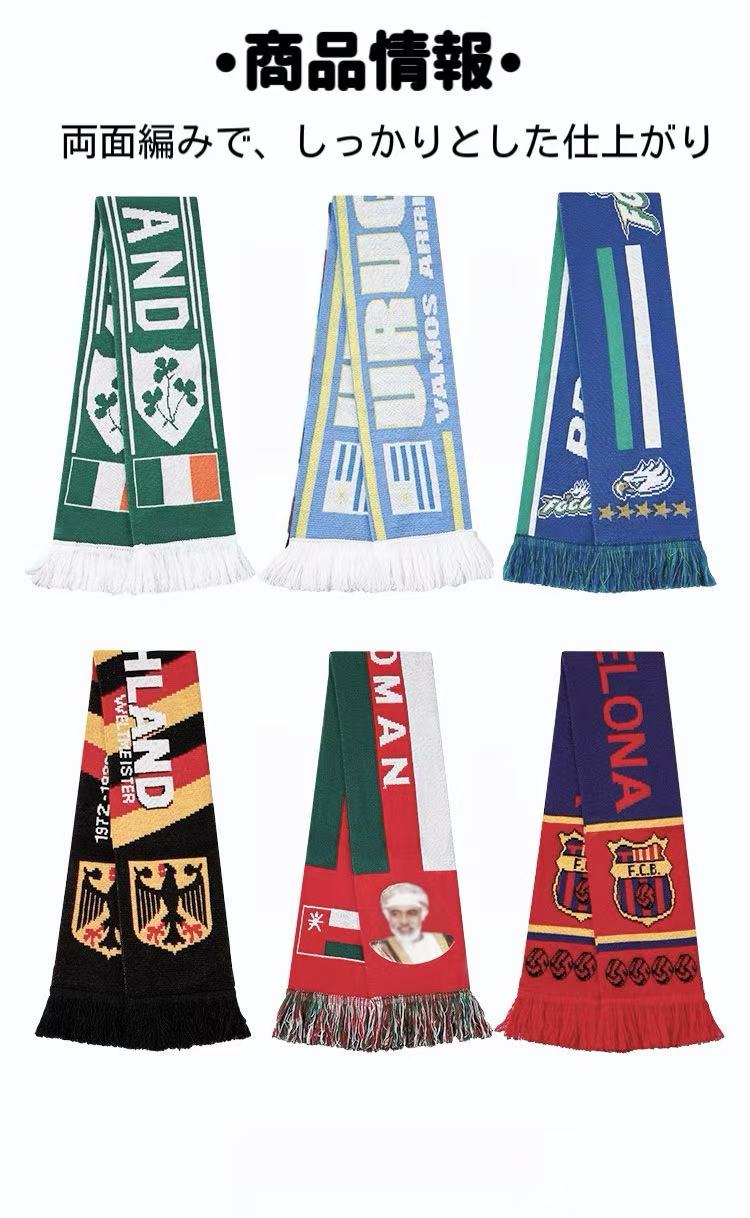 厚みがあり型崩れしにくく、応援マフラーとして存在感のある仕上がりです。