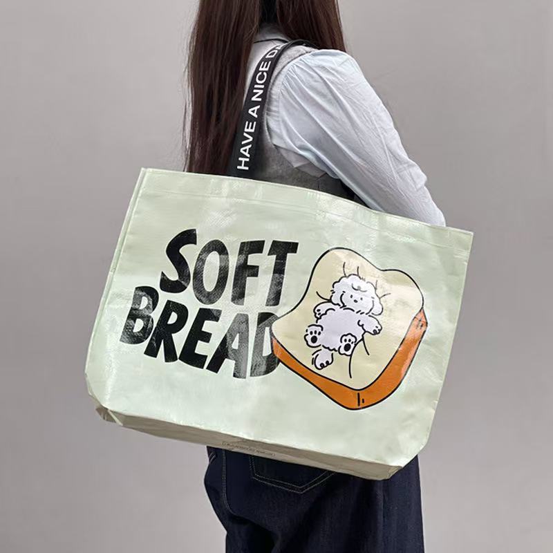 買い物やレジャー、展示会・イベントでの配布用バッグとしても最適。折りたたんでコンパクトに収納可能です。