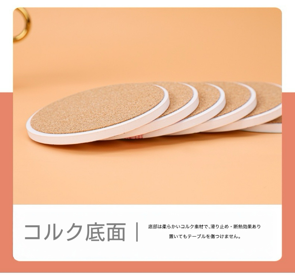 底部にコルクを使用し、滑りにくくテーブルを傷つけません。