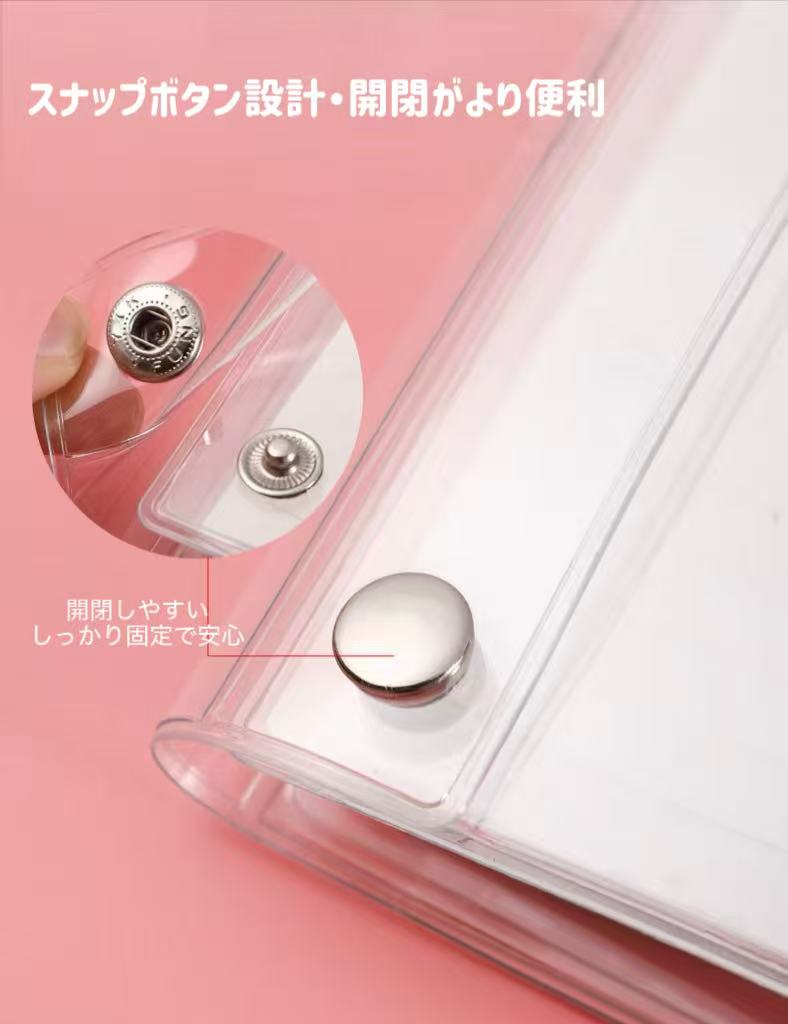 素材:PVC(透明素材)+金属スナップボタン+リングバインダー