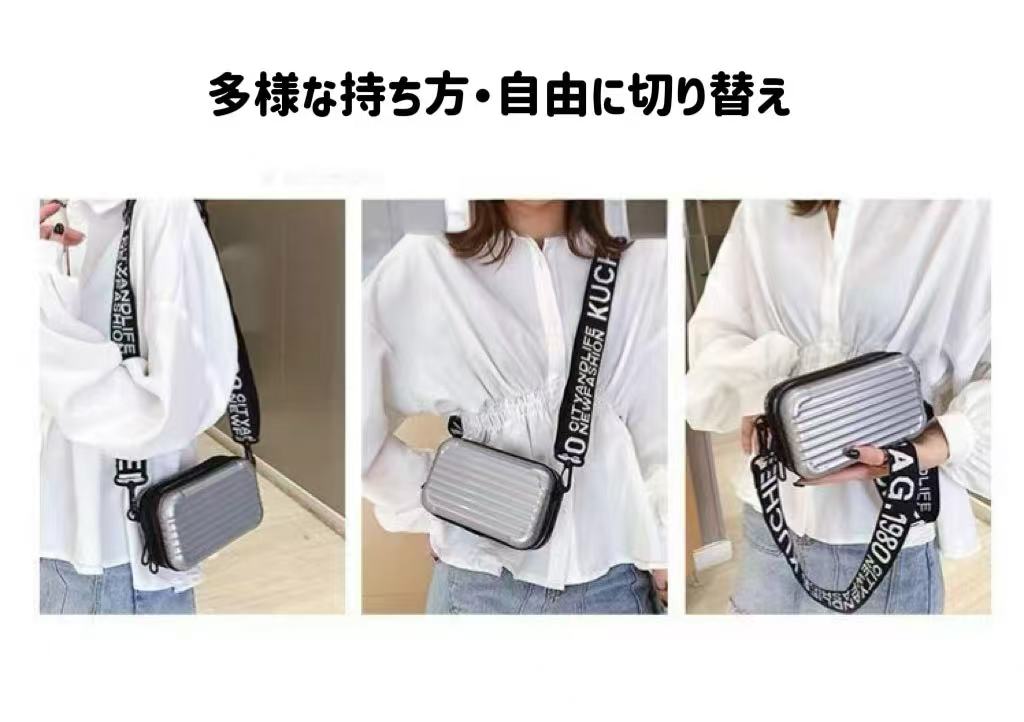 ショルダーストラップ付きで、肩掛け・斜め掛け・手持ちなどシーンに応じて自由に使い分け可能。